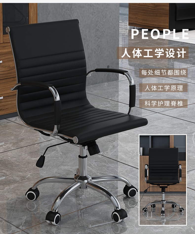 电脑椅皮职员椅办公椅会议转椅子培训椅洽谈椅培训椅前台椅子 黑色滑轮款