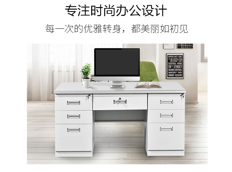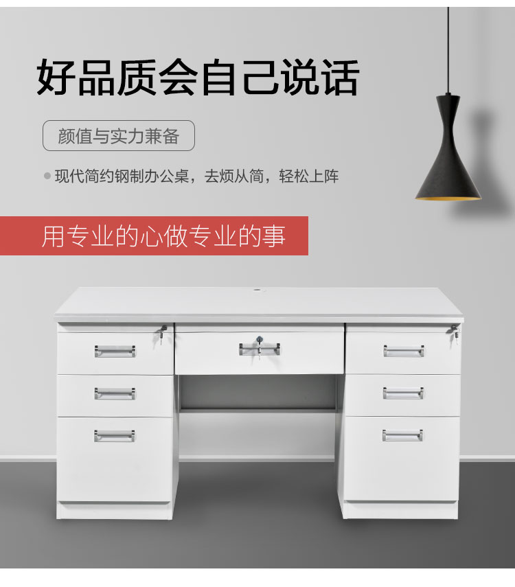 钢制办公桌职员工财务桌工作台带锁带抽屉医用电脑桌1.4米大七抽办公桌
