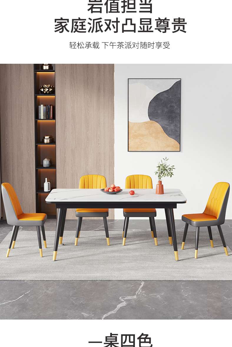 岩板餐桌椅组合家用小户型现代简约轻奢北欧长方形亮光面吃饭桌子