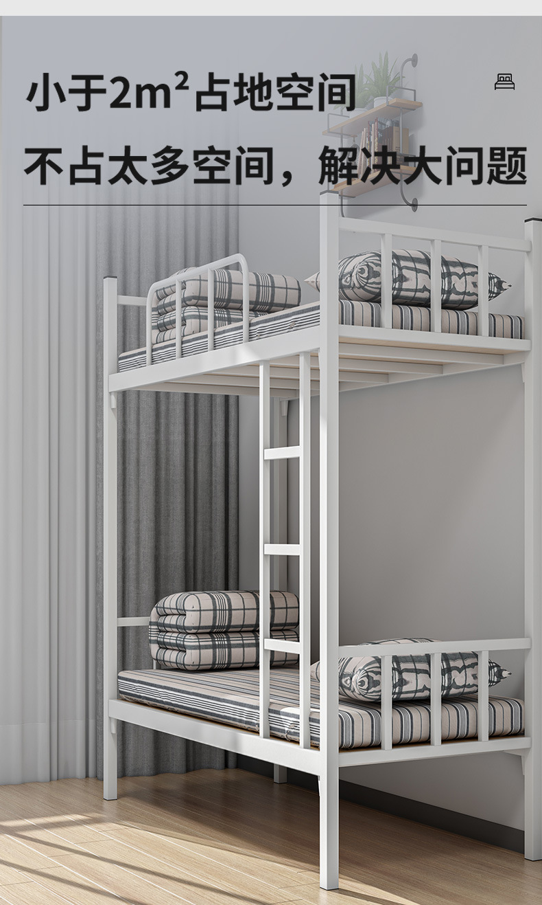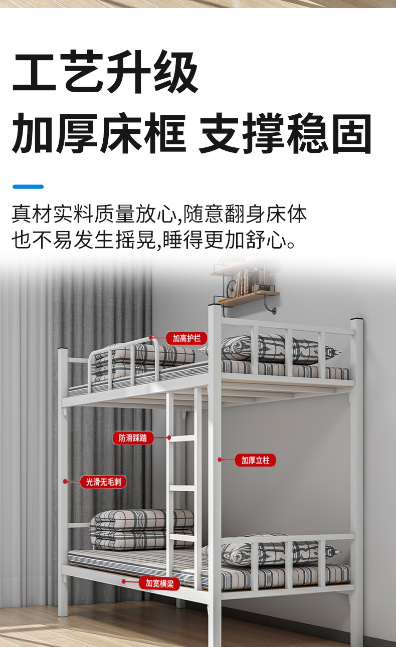学生公寓床铁架床上下铺铁床免螺丝工地员工宿舍双层床成人床高低床带床板 黑色1.2米宽