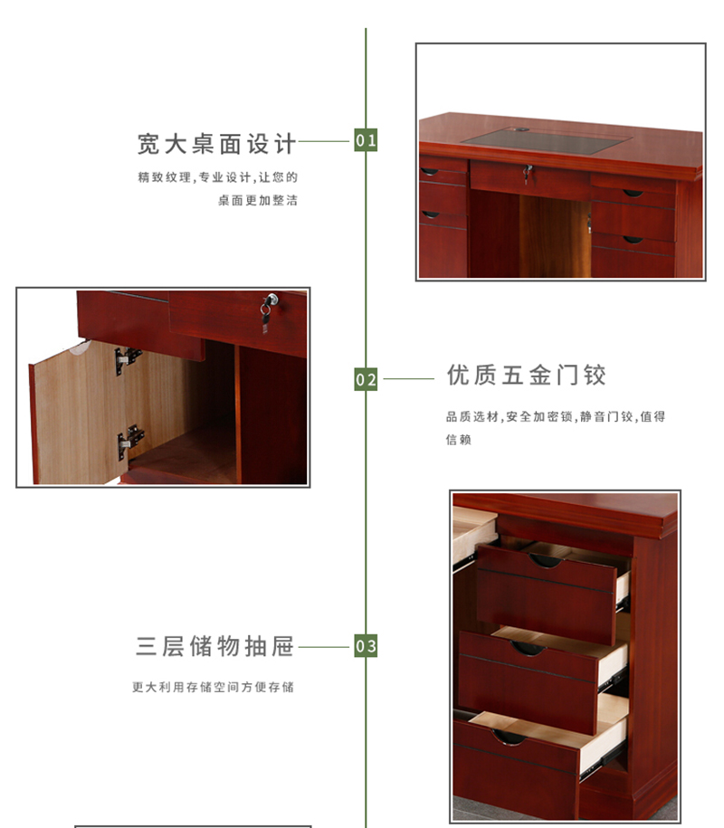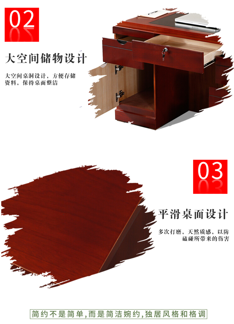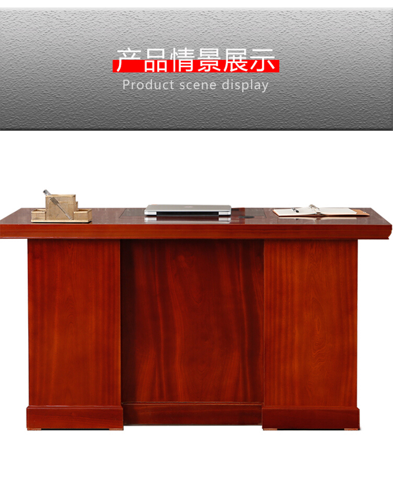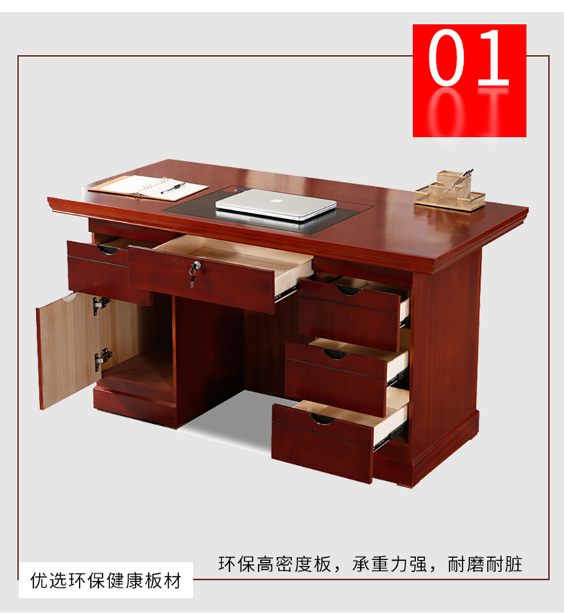 办公桌电脑桌油漆桌办公室经典职员桌写字台带键盘托红棕色1.2米