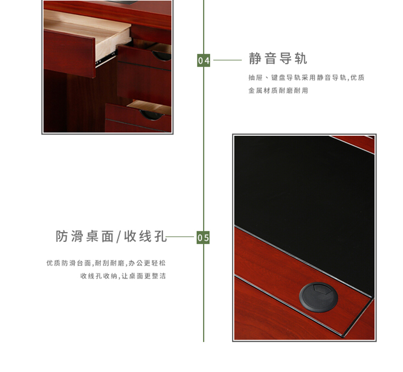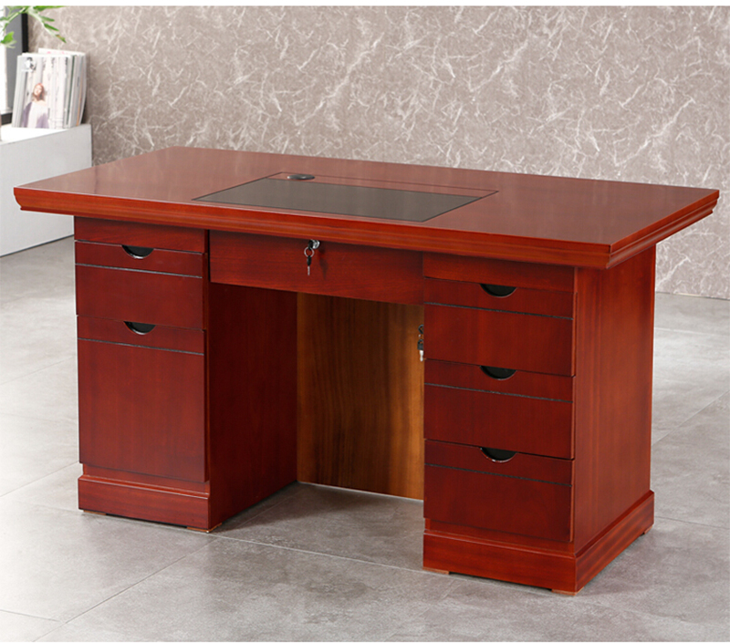 办公桌电脑桌油漆桌办公室经典职员桌写字台带键盘托红棕色1.4米