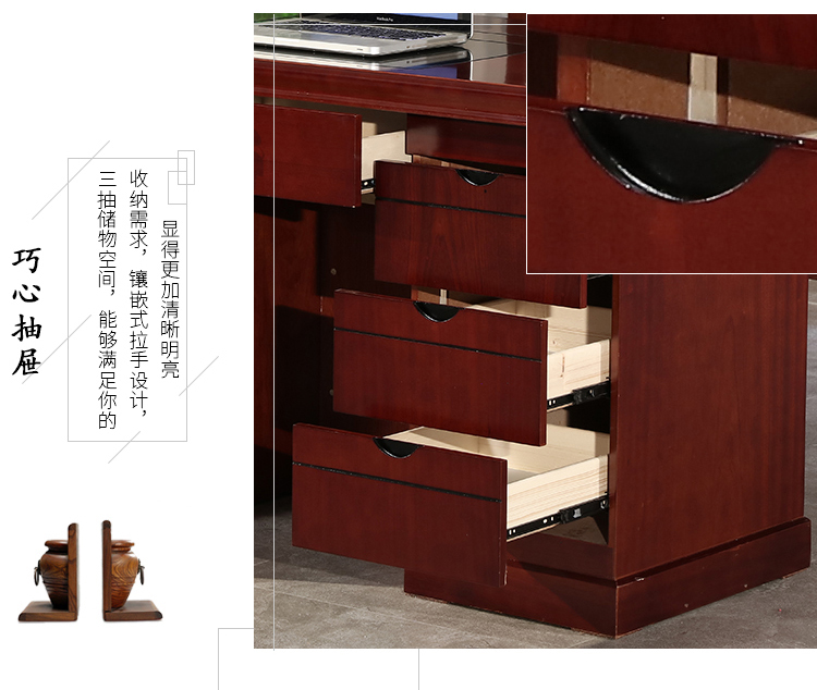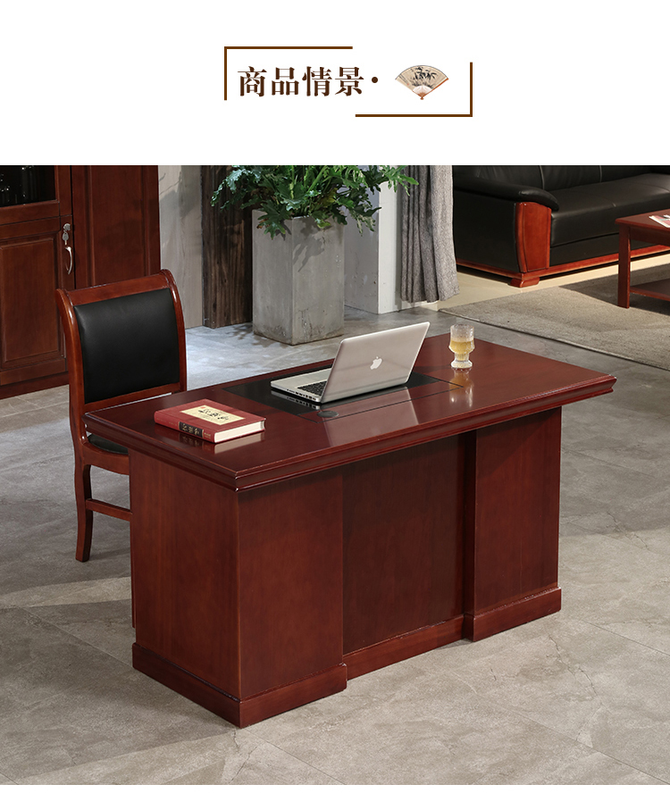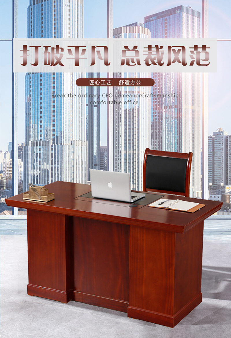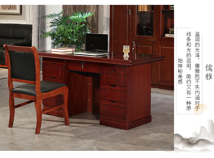 办公桌电脑桌油漆桌办公室经典职员桌写字台带键盘托红棕色1.4米 含椅子