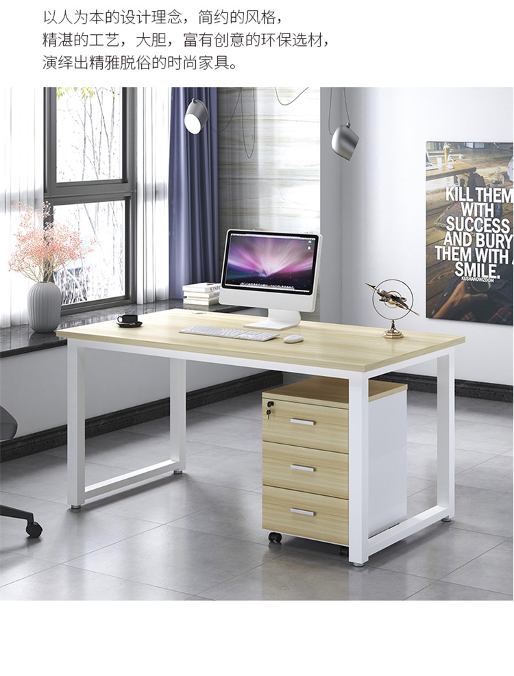 电脑桌台式小户型小桌子家用学习桌写字办公书桌电竞长条桌子 木纹白架1.2M