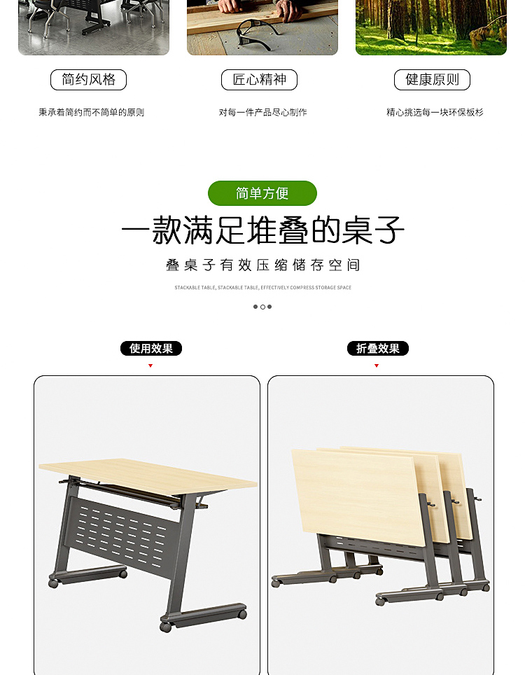 折叠培训桌多功能组合员工办公桌学生会议课桌移动长条桌120*40*75