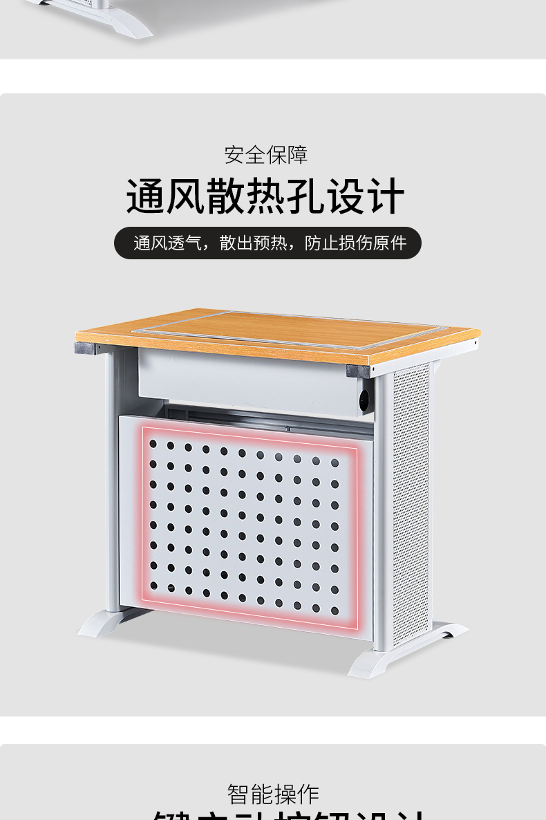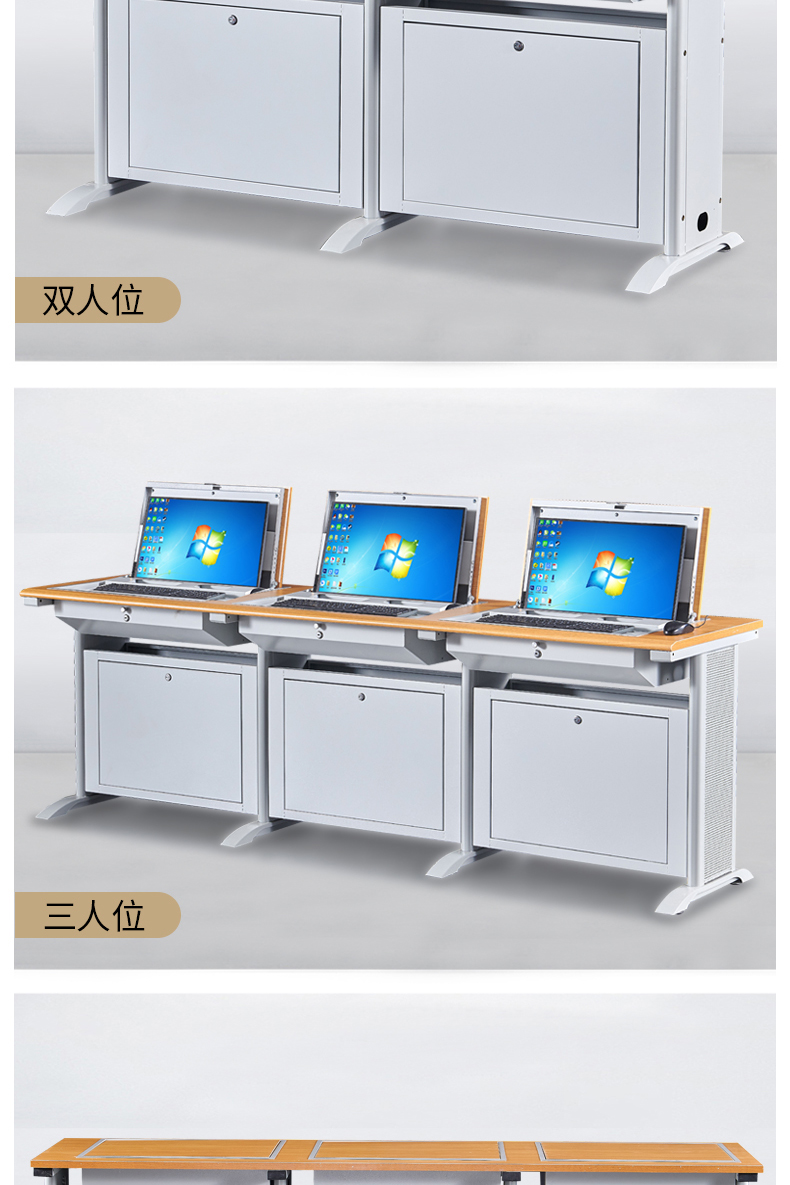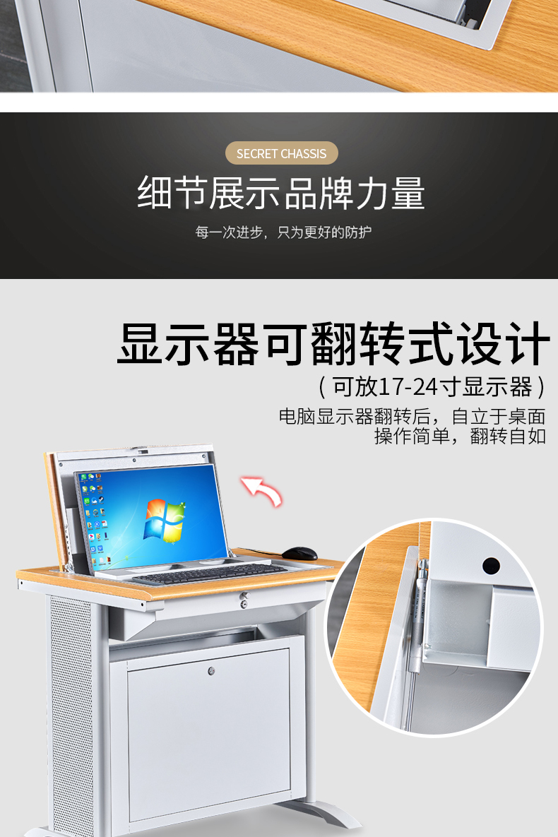 翻转桌培训桌多媒体课桌计算机考试翻转器课桌黄榉色双人翻转式课桌-箱体 1600*600*750mm