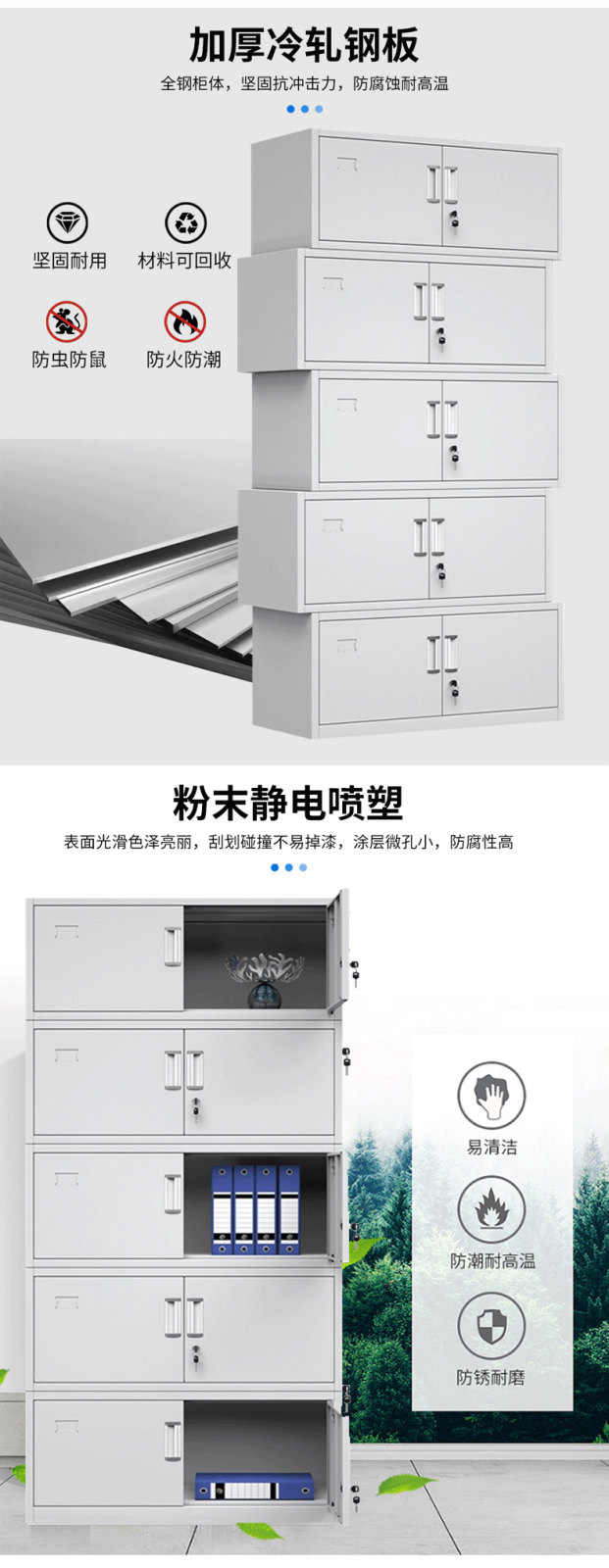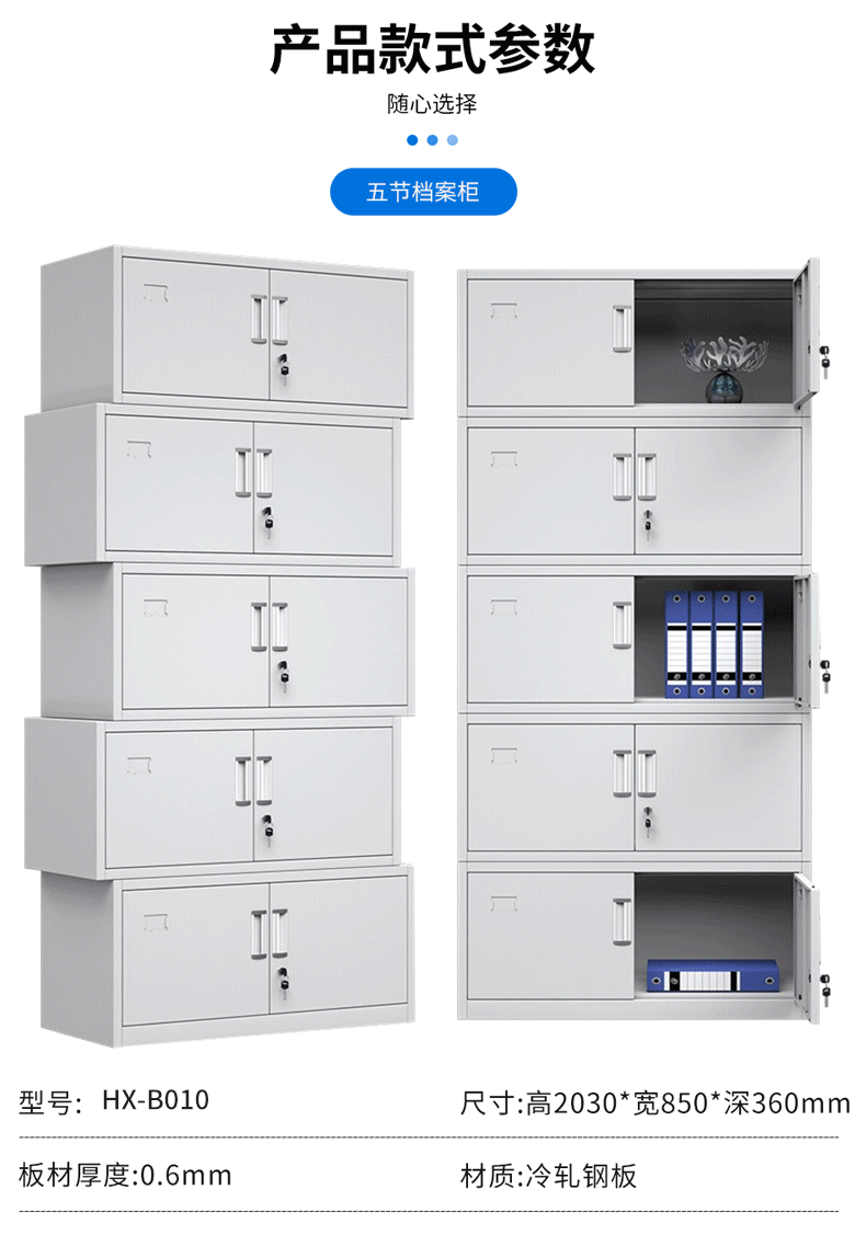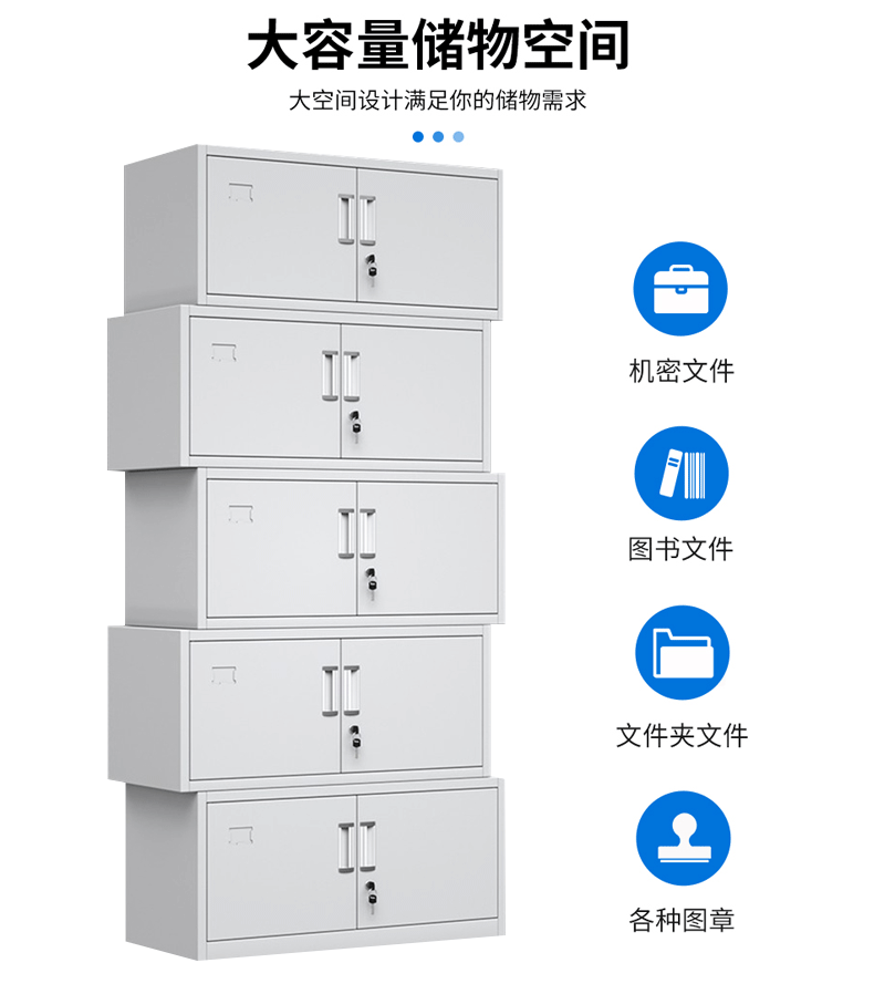 文件柜铁皮柜储物柜抽屉柜钢制办公柜资料柜玻璃柜档案柜凭证柜 分五节文件柜