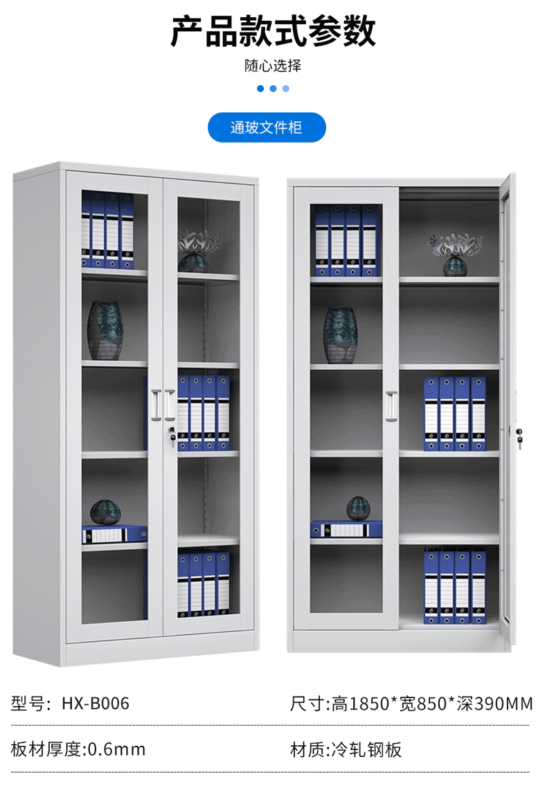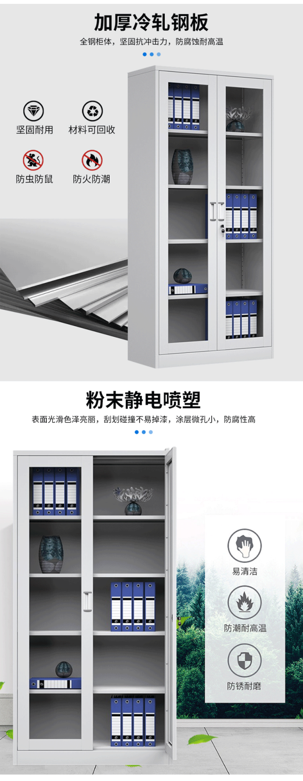 文件柜铁皮柜储物柜抽屉柜钢制办公柜资料柜玻璃柜档案柜凭证柜 通玻文件柜
