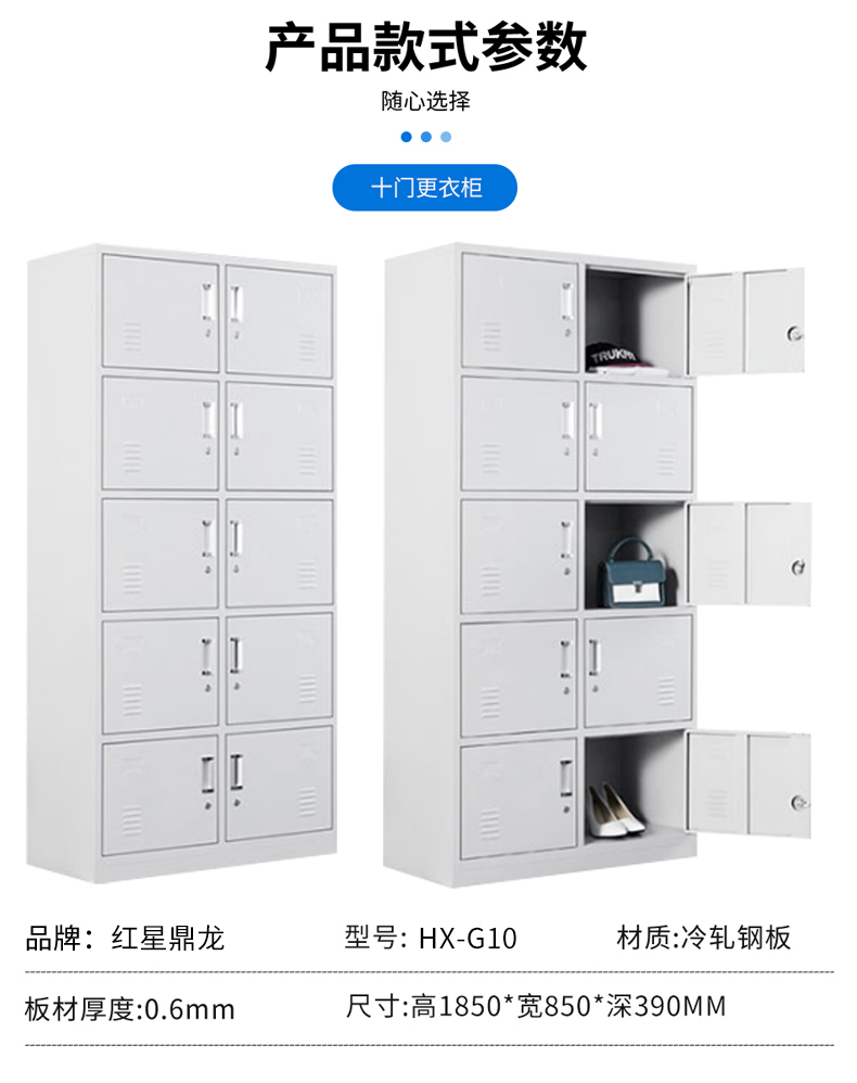 更衣柜员工柜储物柜带锁多门柜浴室存包柜学生宿舍衣物柜 九门更衣柜