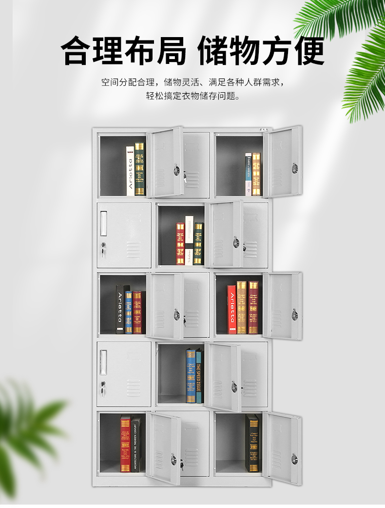 更衣柜员工柜储物柜带锁多门柜浴室存包柜学生宿舍衣物柜 十五门更衣柜