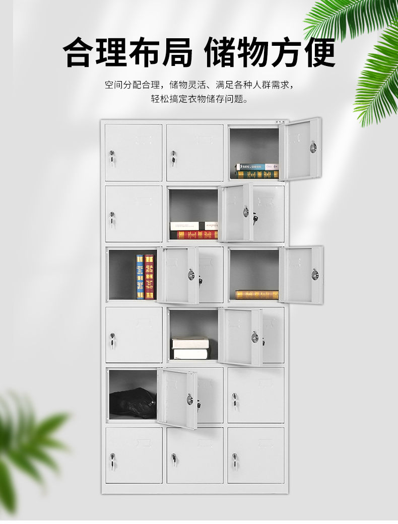 更衣柜员工柜储物柜带锁多门柜浴室存包柜学生宿舍衣物柜 十八门更衣柜