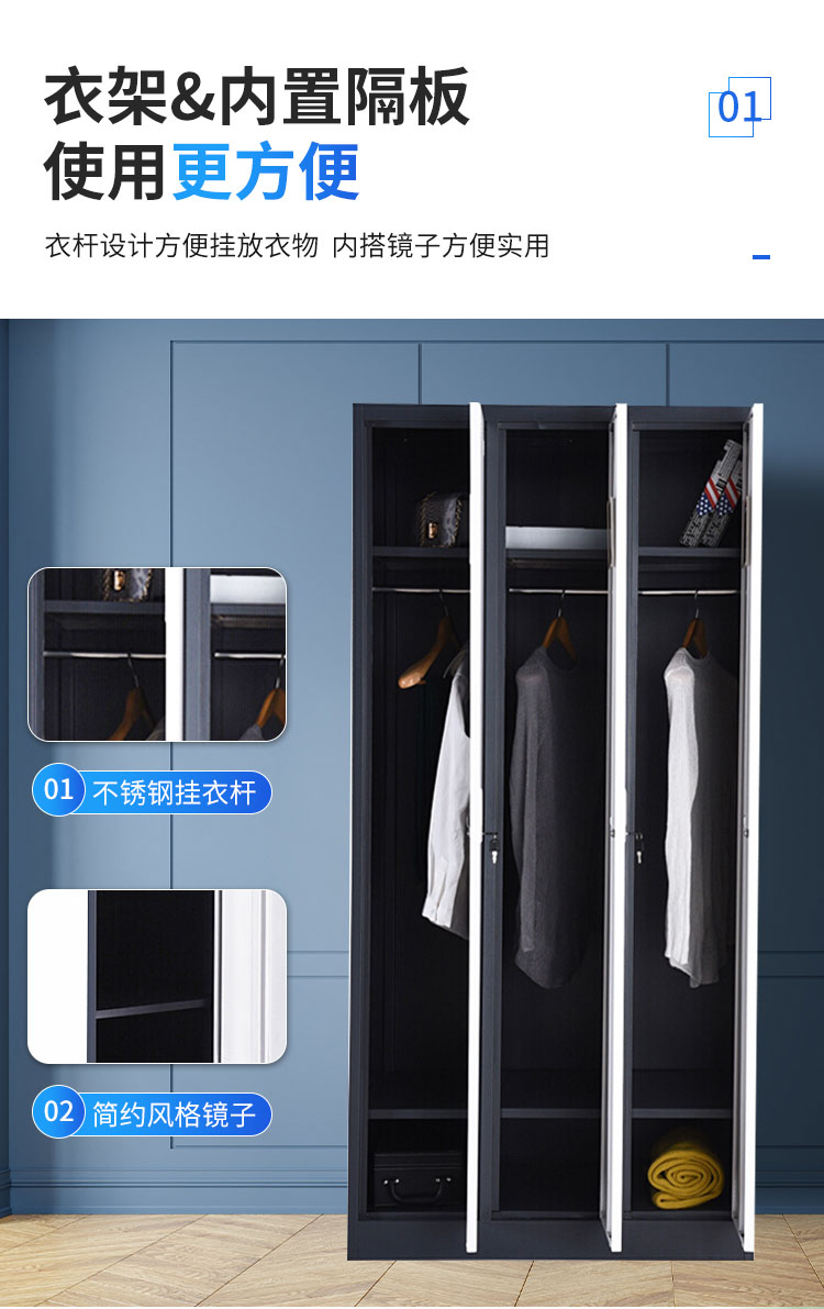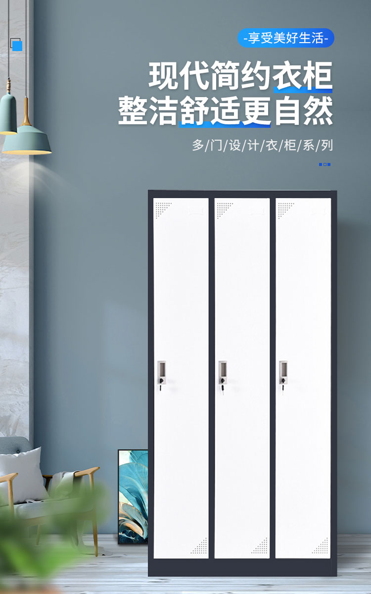 更衣柜员工柜铁皮柜储物柜带锁更衣室衣柜健身房浴室多门柜套色 灰白套色三门