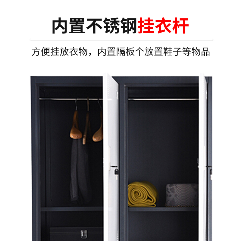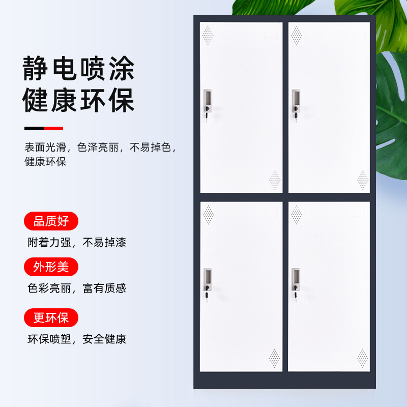 更衣柜员工柜铁皮柜储物柜带锁更衣室衣柜健身房浴室多门柜套色 灰白套色四门