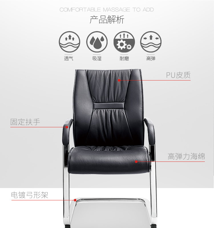 简约办公椅弓形椅职员椅 会议椅子培训椅 家用皮质电脑椅