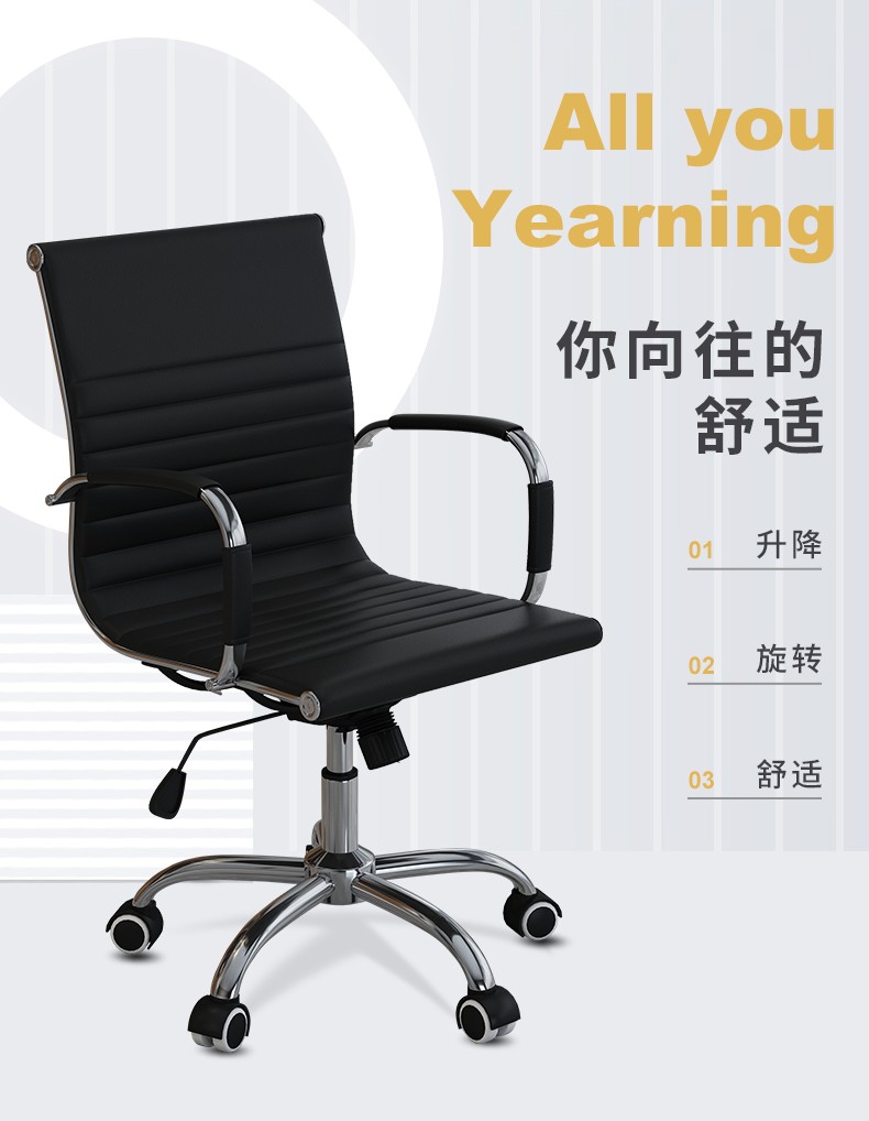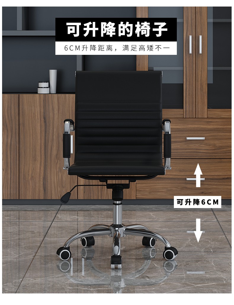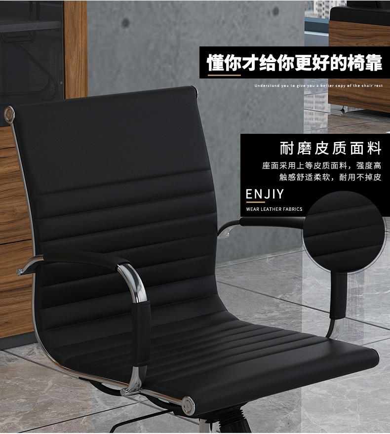 电脑椅皮职员椅办公椅会议转椅子培训椅洽谈椅培训椅前台椅子 黑色滑轮款