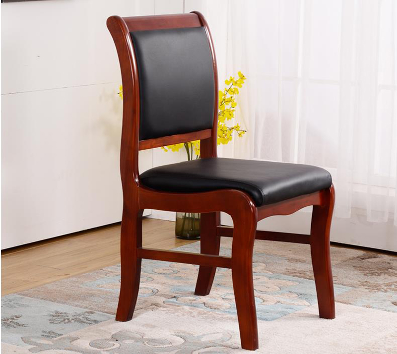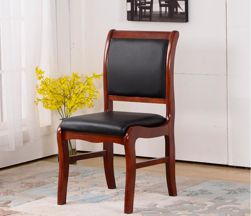 实木会议椅办公椅培训椅原木带扶手皮面四脚靠背无扶手麻将室椅 靠背椅