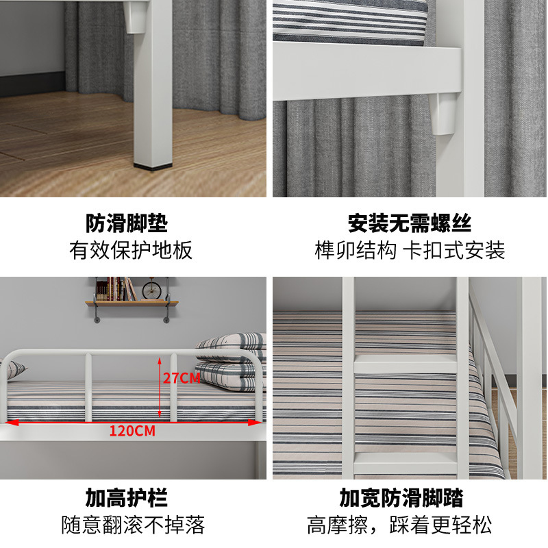 上下铺铁床高低床成人铁艺寝室床学生员工宿舍工地双层床架子床 0.9m*2m
