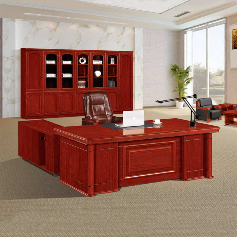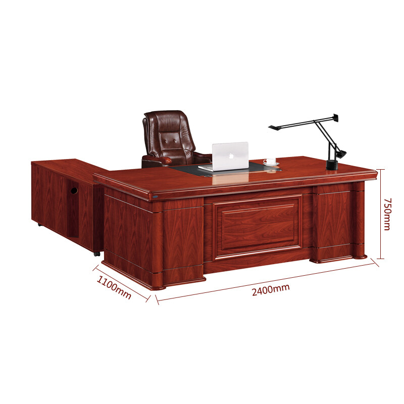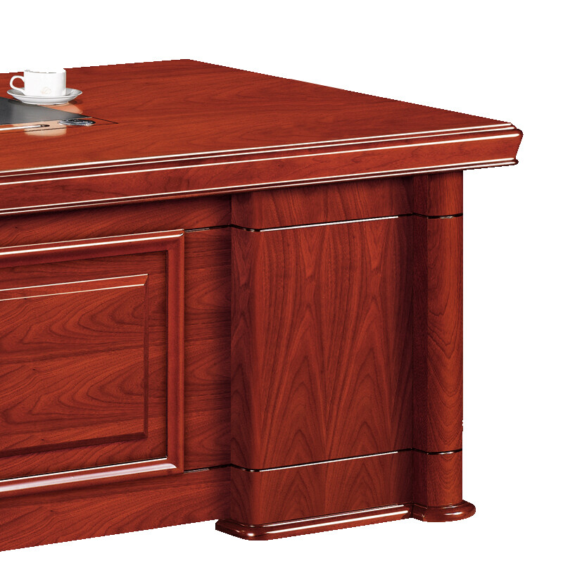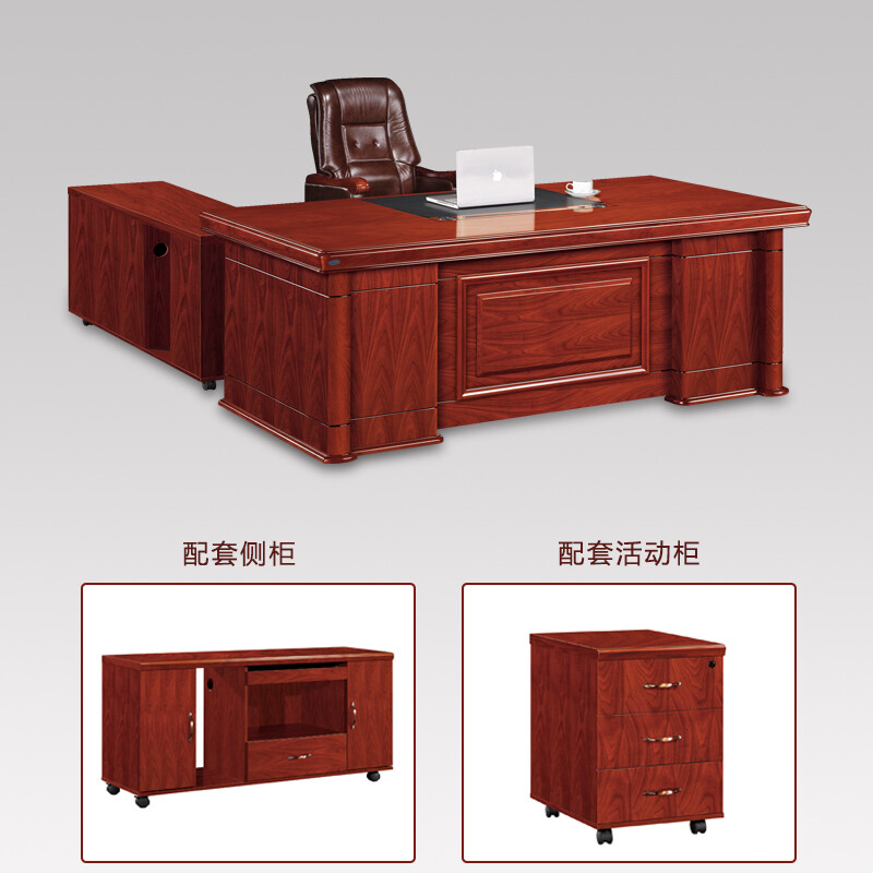 办公家具班台班桌传统油漆贴皮胡桃木皮色办公桌含侧柜2.4米