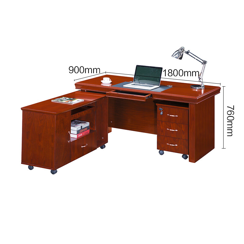 红星鼎龙 办公桌经理桌油漆老板桌实木贴皮大班台主管桌1800*900*760含柜