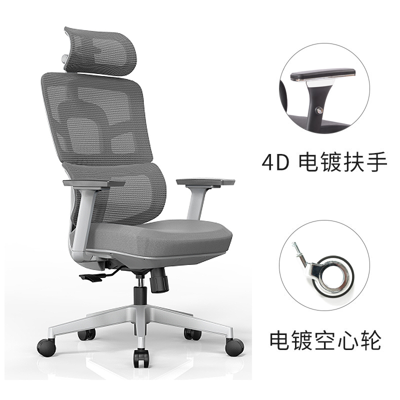红星鼎龙 人体工学椅电脑椅办公老板椅午休椅子久坐舒适整椅发货 灰色带搁脚