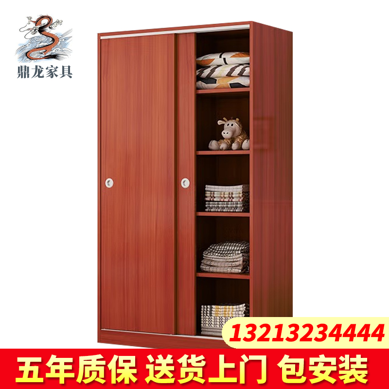 衣柜实木推拉门简易储物柜简约现代组装出租房用的经济型木质柜子小户型两门小衣柜 长120宽50高180