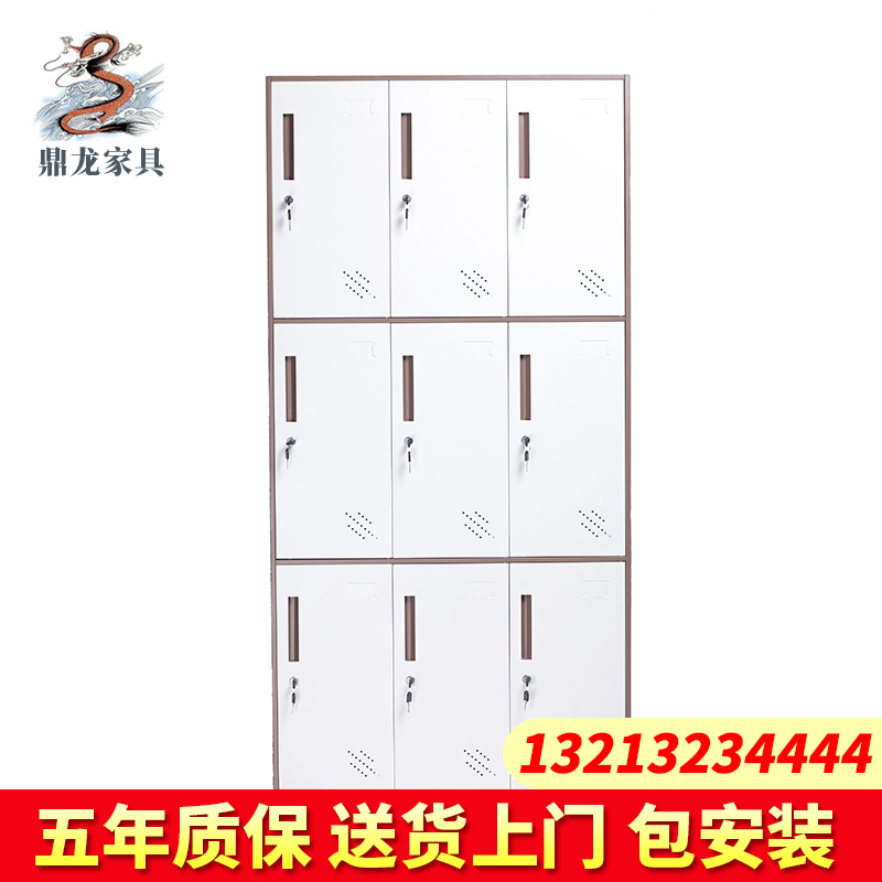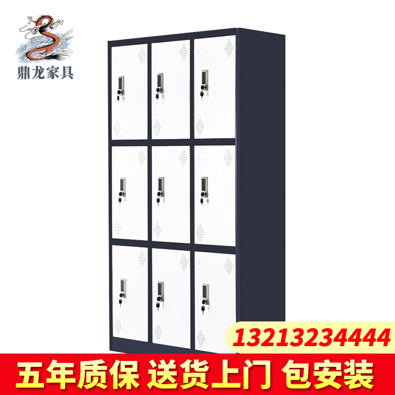 更衣柜员工柜铁皮柜储物柜带锁更衣室衣柜健身房浴室多门柜套色 灰白套色九门