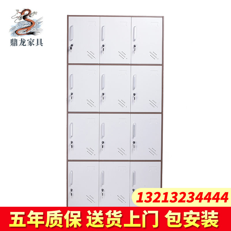 薄边更衣柜拆装铁皮柜储物柜员工柜寄存包柜鞋柜咖啡套色加厚款 十二门更衣柜